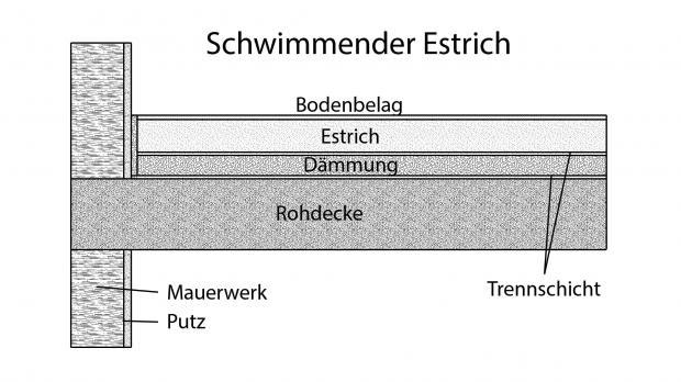 Schwimmende Estriche werden in Wohnungs- und Verwaltungsbau sowie in öffentlichen Bauten verwendet und können mit oder ohne Fussbodenheizung eingebaut werden. Schwimmende Estriche haben eine vertikale sowie horizontale Beweglichkeit, das heisst die Estrichplatte hat keinen unmittelbaren Kontakt zu anderen Bauteilen und Rohrleitungen und liegt auf einer Dämmung. Dies dient der Verbesserung der Wärme- und Trittschalldämmung.